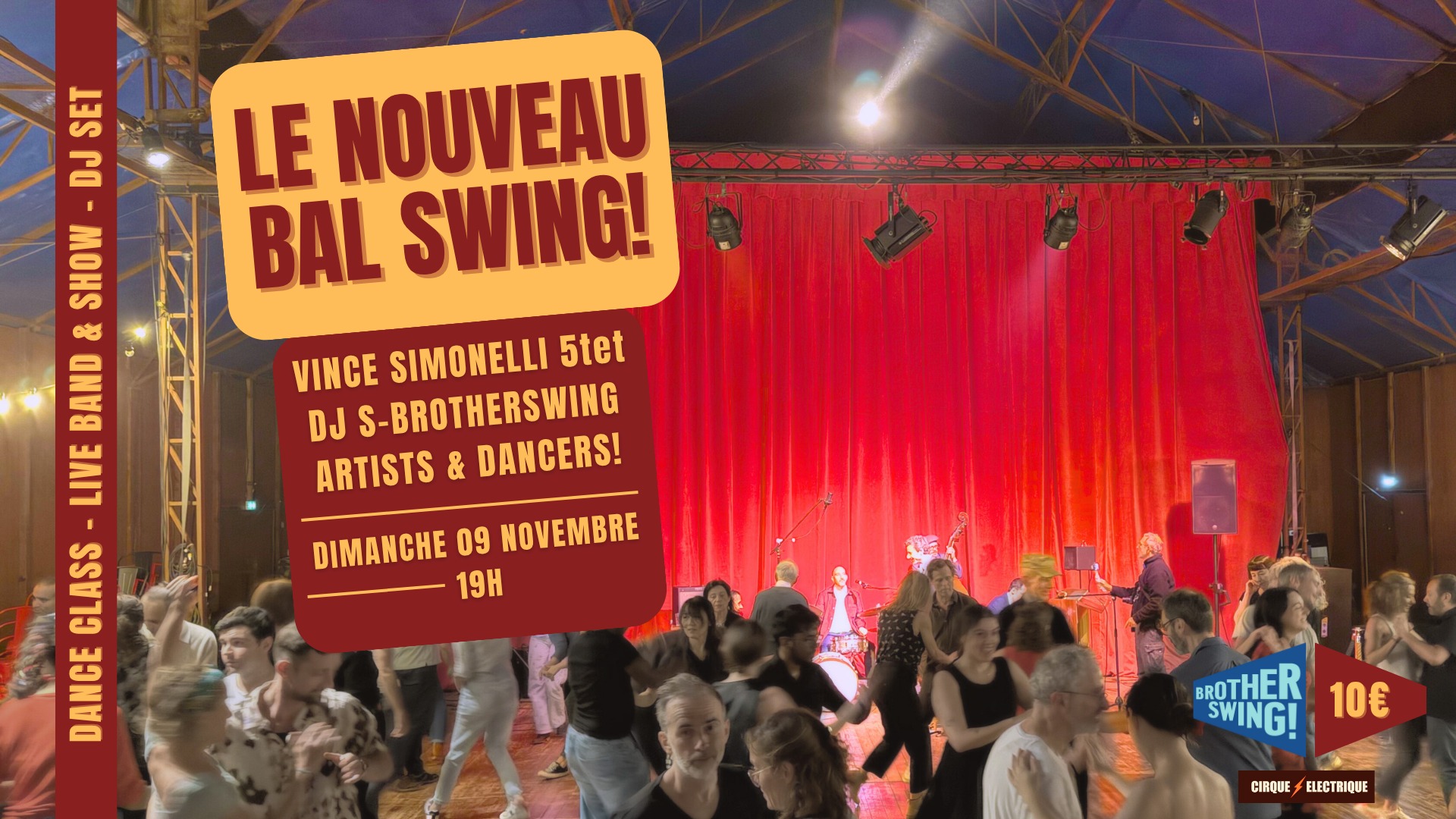 Une soirée pleine d’énergie, de musique et de danse dans un lieu unique : ne manquez pas ce tout nouveau Bal Swing dans le nouveau ballroom du Cirque Électrique.