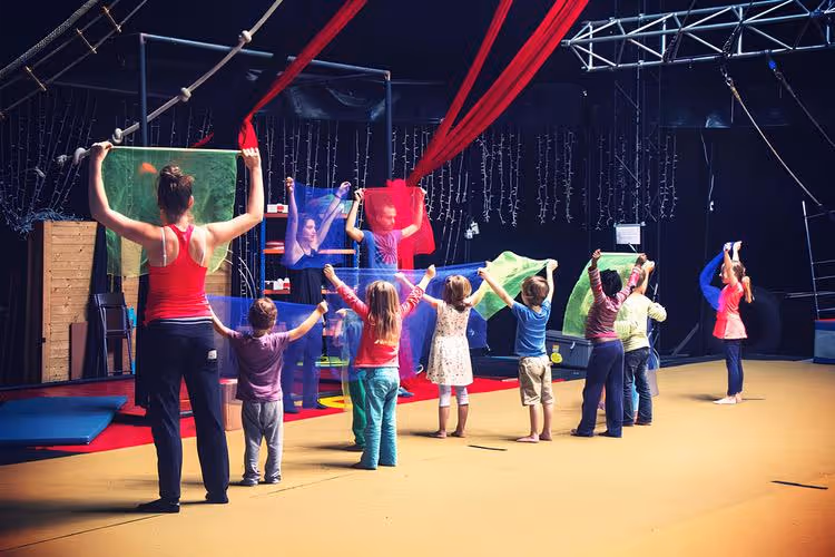 Les cours pluridisciplinaires pour les 6-8 ans sont une porte d'entrée idéale dans l'univers des arts du cirque. Chaque semaine, les enfants explorent les quatre grandes familles circassiennes: acrobatie au sol, disciplines aériennes (tissu, trapèze, cerceau), jonglerie et équilibre sur objets (boule, fil, rola-bola).
