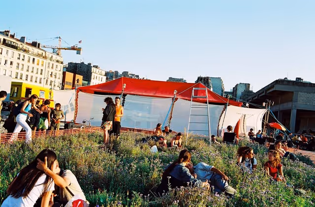 La cour du Maroc, c’est aussi l’occupation d’une friche urbaine, un terrain vague dans un quartier difficile, transformé en lieu de vie et de rencontres improbables entre artistes, habitants, associations du quartier, curieux de passage.