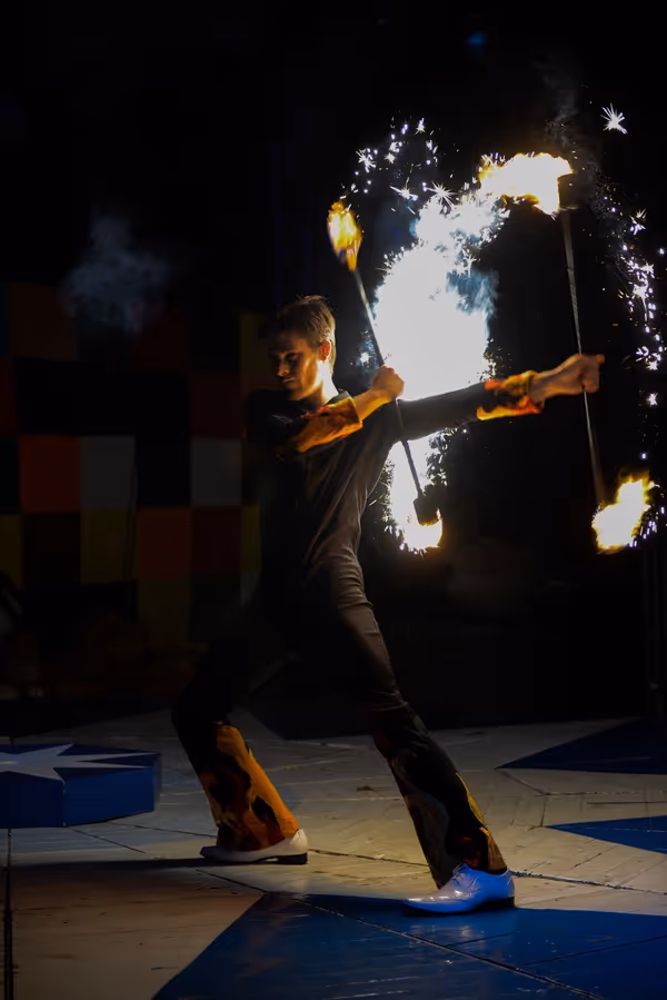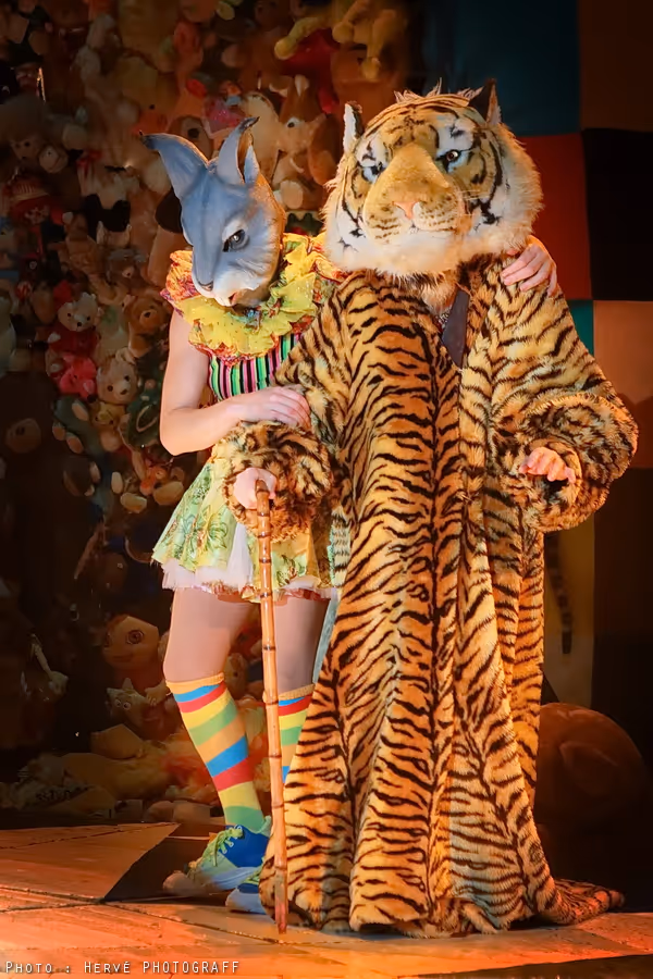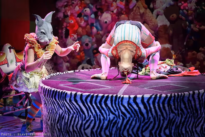 Terme circassien qui désigne traditionnellement n’importe quel dessert servi sous la tente réfectoire des cirques, ABA DABA est un spectacle sous chapiteau ou un théâtre illustré par des numéros de cirque, trapèze, contorsion, mât chinois, jonglage, hula hoops, acrobaties, tissu, dressage de peluches, marionnettes décalées, fil au sol… Et bien sûr la ménagerie d’Abadaba avec Mr Cochon, Mr Cheval, Mr Chien, Melle Lapin et bien d’autres.