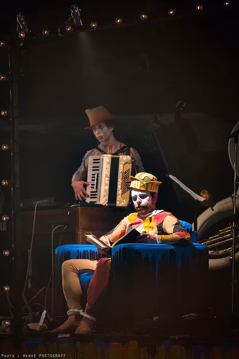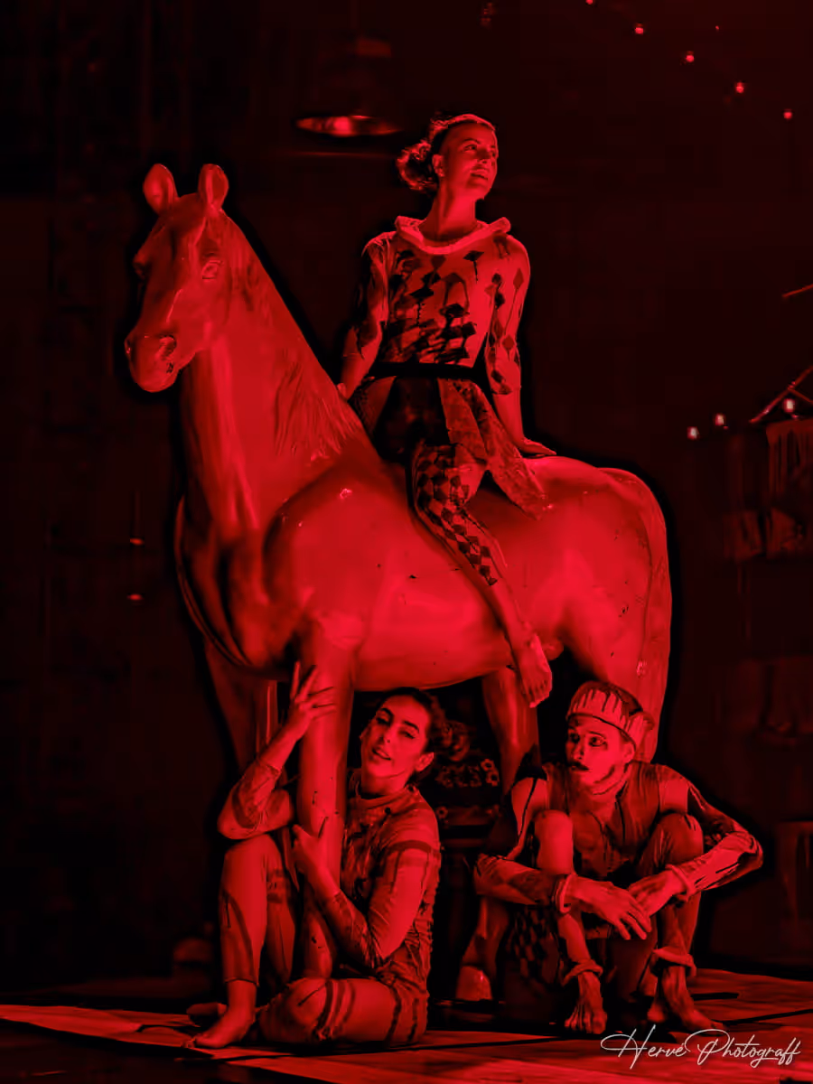 CARNIVAL, un conte de cirque d’Eugène Durif avec des personnages grotesques faits de plastique, pantins de colle et de pétrole d’or. Un cirque automate où fildefériste, jongleur, contorsionniste, clown, trapéziste, roue Cyr… se jouent d’un manège d’animaux en toc. De la musique mécanique interprétée par deux musiciens entourés par un orchestre de mannequins arlequin. Un conte désuet et pastel. Une note de peinture. Une fête foraine pixel. Un hymne aux saltimbanques. En route mauvaise troupe…« Il était une fois ou bien deux fois plutôt qu’une… Il était une fois ou bien plusieurs… »