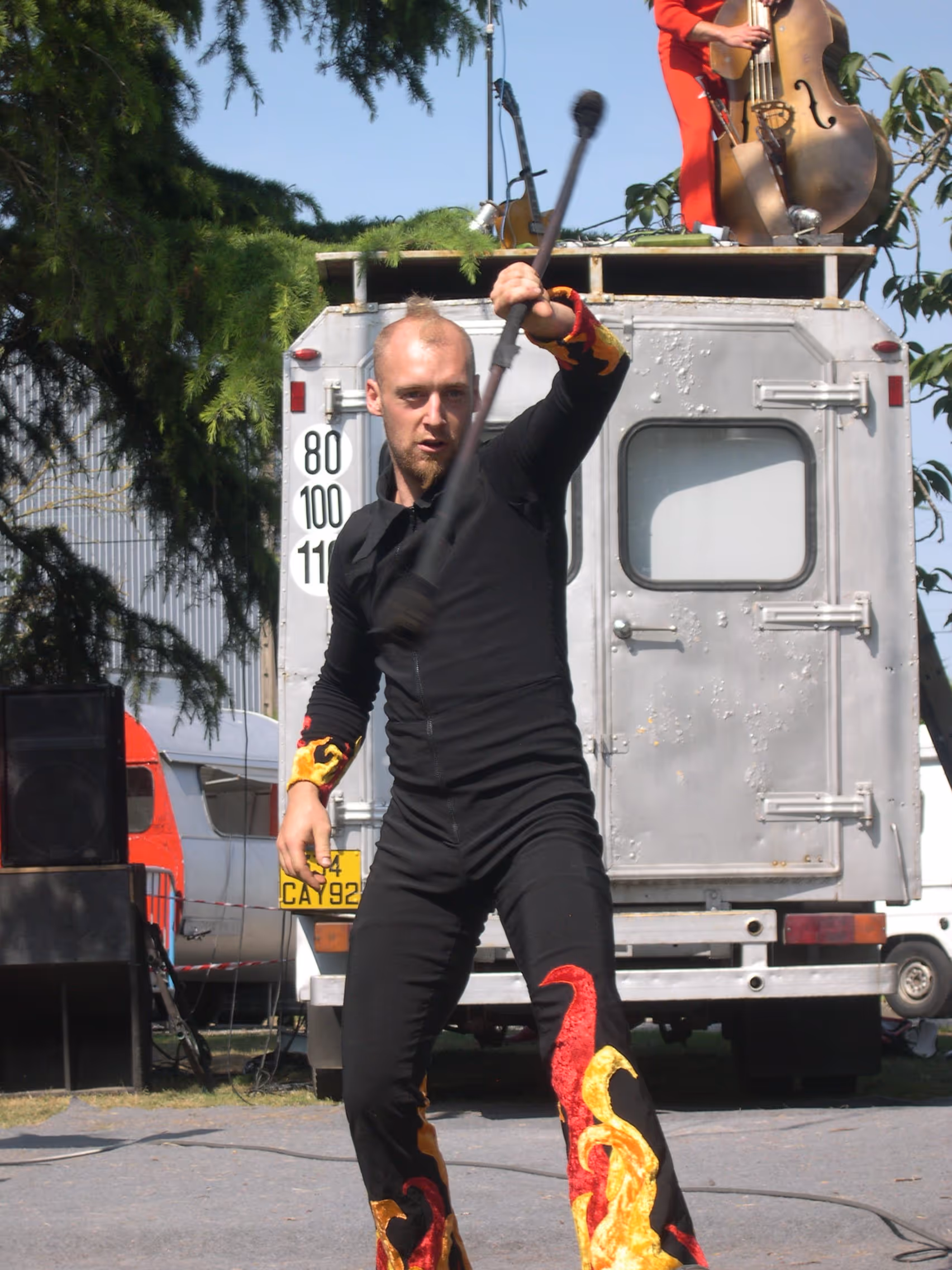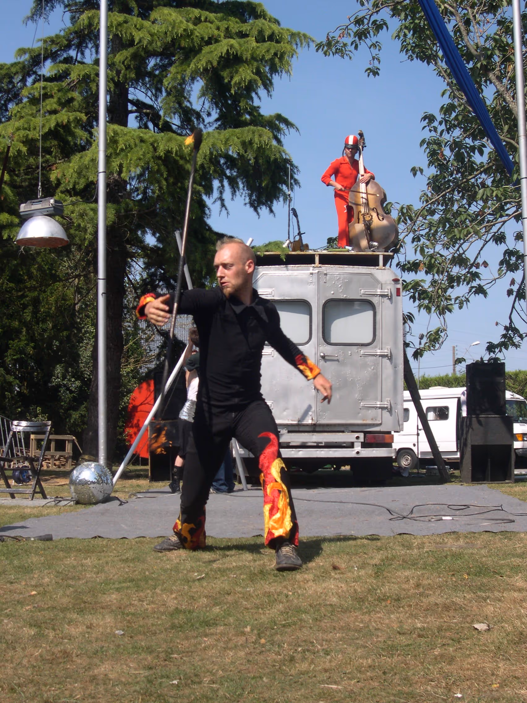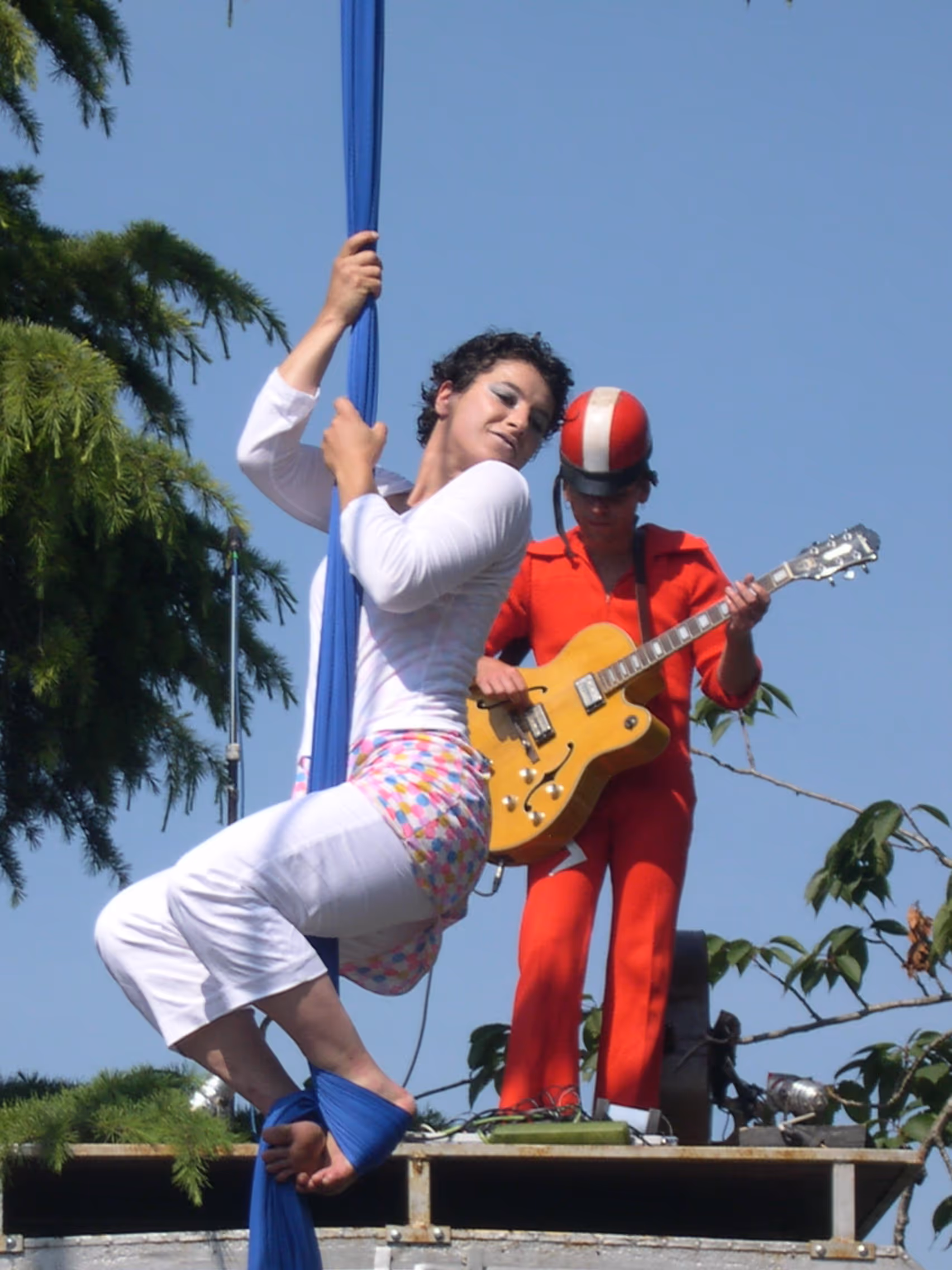 L’univers décalé du Cirque Électrique en extérieur : sur un camion-scène argenté dont les fenêtres diffusent des vidéos, le trio du Cirque Électrique joue en live ses mélodies électro-rock. Devant ce camion, un portique métallique accueille leurs performances aériennes et leurs mécaniques acrobatiques. Passengers est un spectacle évolutif, construit et vécu comme un carnet de route qui se nourrit des villes et campagnes qu’il traverse, des personnes qu’il rencontre…